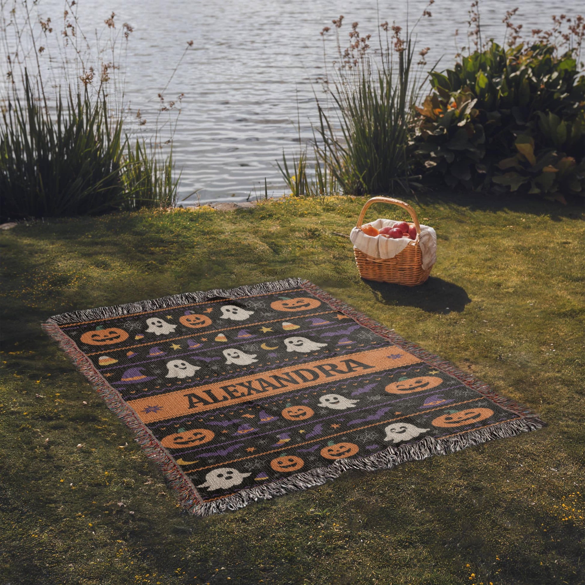 Spooky-Cute Personalized Ghost & Pumpkin Halloween Throw